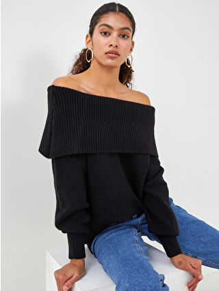 Kayık Yaka Düz Uzun Kollu Kadın Triko Kazak