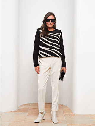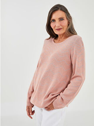Bisiklet Yaka Kendinden Desenli Uzun Kollu Kadın Triko Kazak