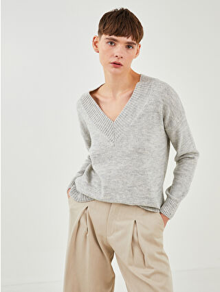 V Yaka Uzun Kollu Kadın Triko Kazak