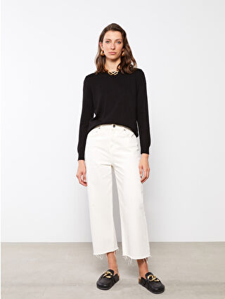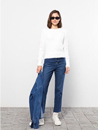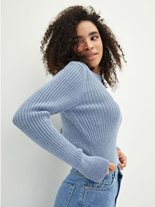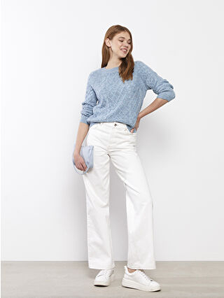 Bisiklet Yaka Ajurlu Uzun Kollu Kadın Triko Kazak