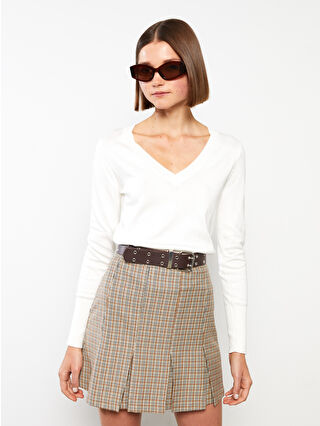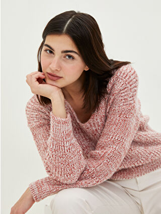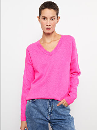 V Yaka Düz Uzun Kollu Kadın Triko Kazak