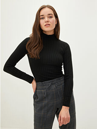 Yarım Balıkçı Yaka Düz Uzun Kollu Kaşkorse Kadın Kazak