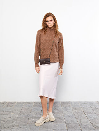 Balıkçı Yaka Kendinden Desenli Uzun Kollu Kadın Triko Kazak