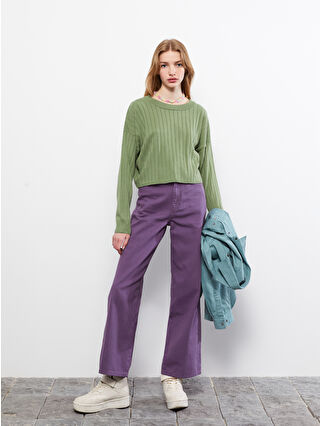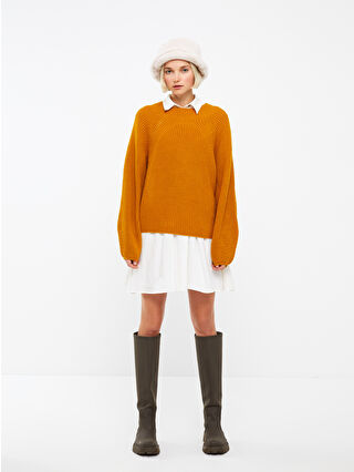 Bisiklet Yaka Düz Uzun Kollu Kadın Triko Kazak